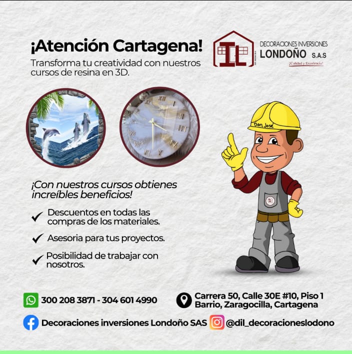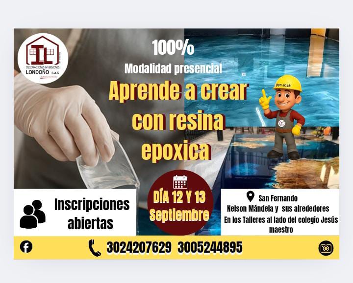 Te invitamos a participar de nuestros cursos teoría práctica 100% presencial de resina epóxica porcelanato líquido 3D. no importa mi edad ni sexo desde cero hasta un nivel experto si deseas aprender o emprender pregunta por los beneficios de realizar los cursos con nosotros deja volar tu creatividad conoce más de nosotros👇